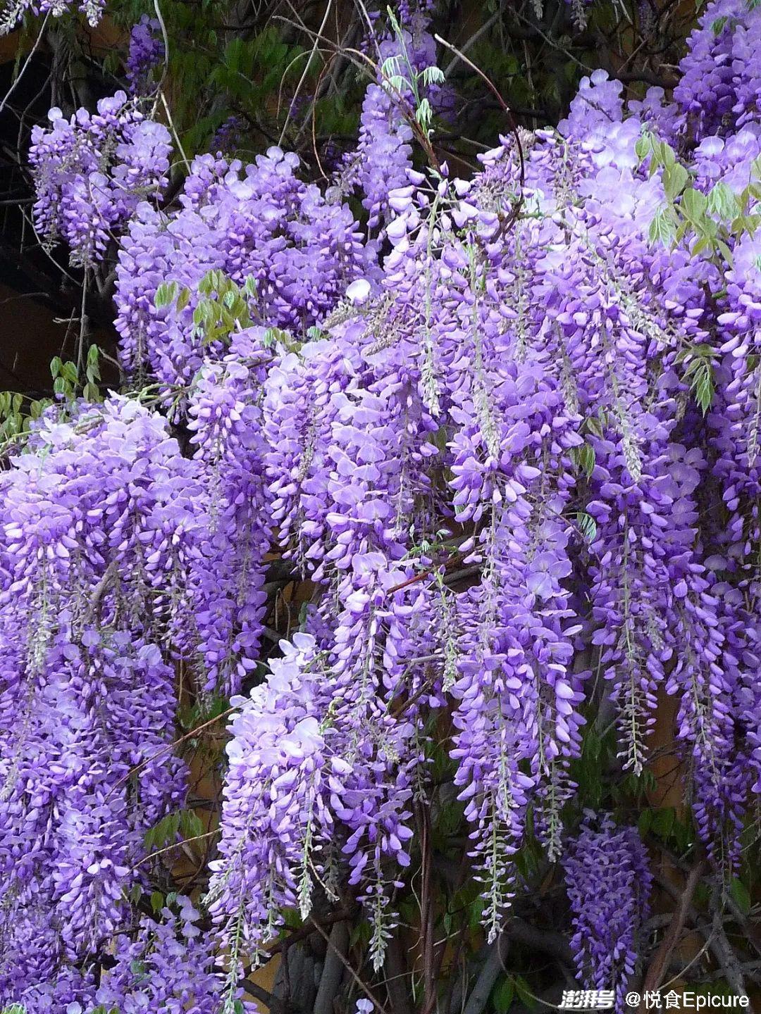 我想起北京如今已绝迹的藤萝饼,赵珩的《老饕漫话》记载:在社稷坛的西门外,沿中山公园西墙一带,上世纪三四十年代,开设了春明馆、长美轩和柏斯馨等几家饭馆和茶点社。饭馆在室内,茶座儿在露天。在茶座儿中间,有两三架很茂盛的藤萝花架,爬满紫藤,一串串淡紫色的藤萝花参差垂下。