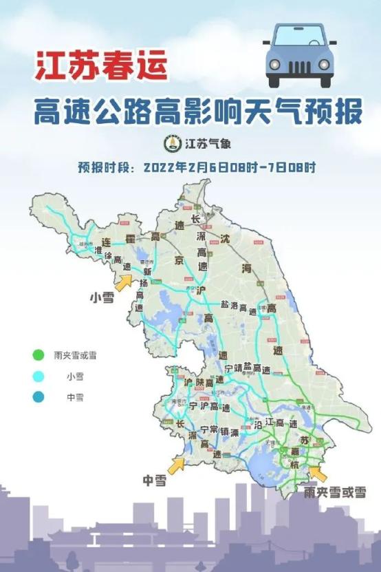受降雪影响的路段有:宿淮盐、宁宿徐、宁靖盐、连徐西段、宁连、宁常镇溧、宁杭、宁通、泰州大桥、润扬大桥、京沪高速、东部高速、绕越、南京四桥、长江三桥、沪宁、锡宜等;由于淮河以南中西部部分地区降雪量较大,会出现积雪,需注意行车安全,提前做好出行规划。盐城具体天气预报