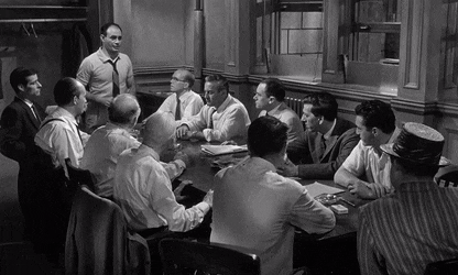 正巧,最近刚重温了电影《十二怒汉》(12 Angry Men,1957),里面的12位陪审中,最初质疑嫌疑人是否“有罪”的人只有一位(1/11),但随着剧情的推进,票数逐渐发生了扭转: