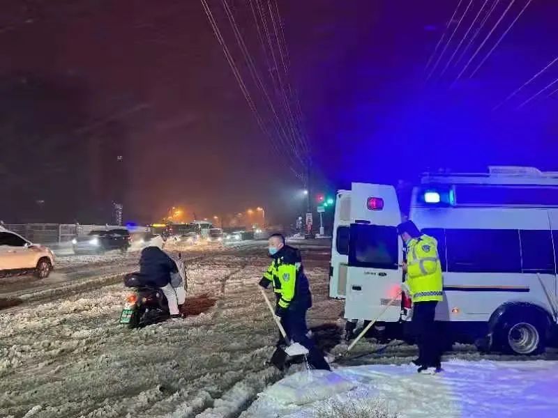 执勤民辅警昼夜不停积极清除积雪路障隐患