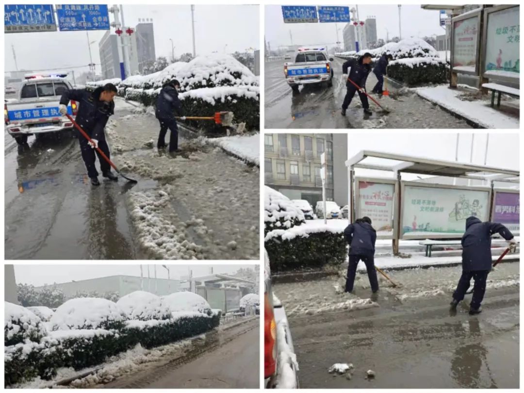 针对北城地区降雪较大情况长丰城管组织800余名环卫人员