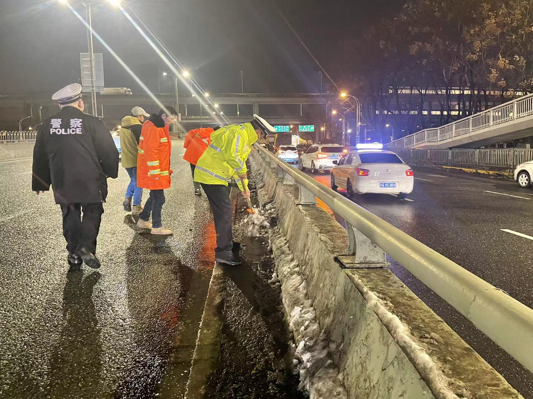 雨雪天气结束后,气温仍较低,道路还可能有结冰的风险,外出仍需警惕路滑。根据历史事故及路面温度监测情况,全市临湖临水桥梁及背阴面高架等点段为结冰易发、多发路段,需重点关注。请有出行需求的群众提前规划行车线路,合理安排行程,尽量避开受雨雪天气影响的路段。针对早晚高峰事故高发路段路口提前关注,做到减速慢行。