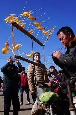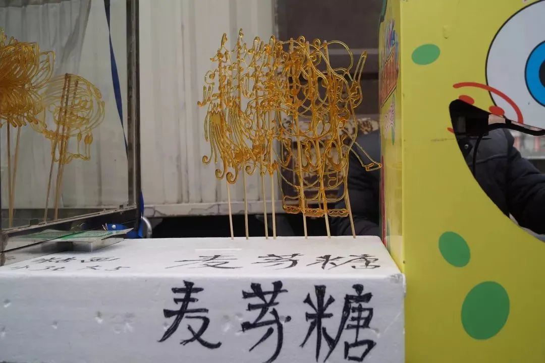 孩子们最喜欢的琉璃咯嘣、糖人、糖画都悉数亮相……一点点糖稀在身怀绝技的老手艺人手里像变魔术一般,三吹两扭就变成了孙悟空、猪八戒……平常难得一见的传统手艺,在纸坊庙会上都能见到。