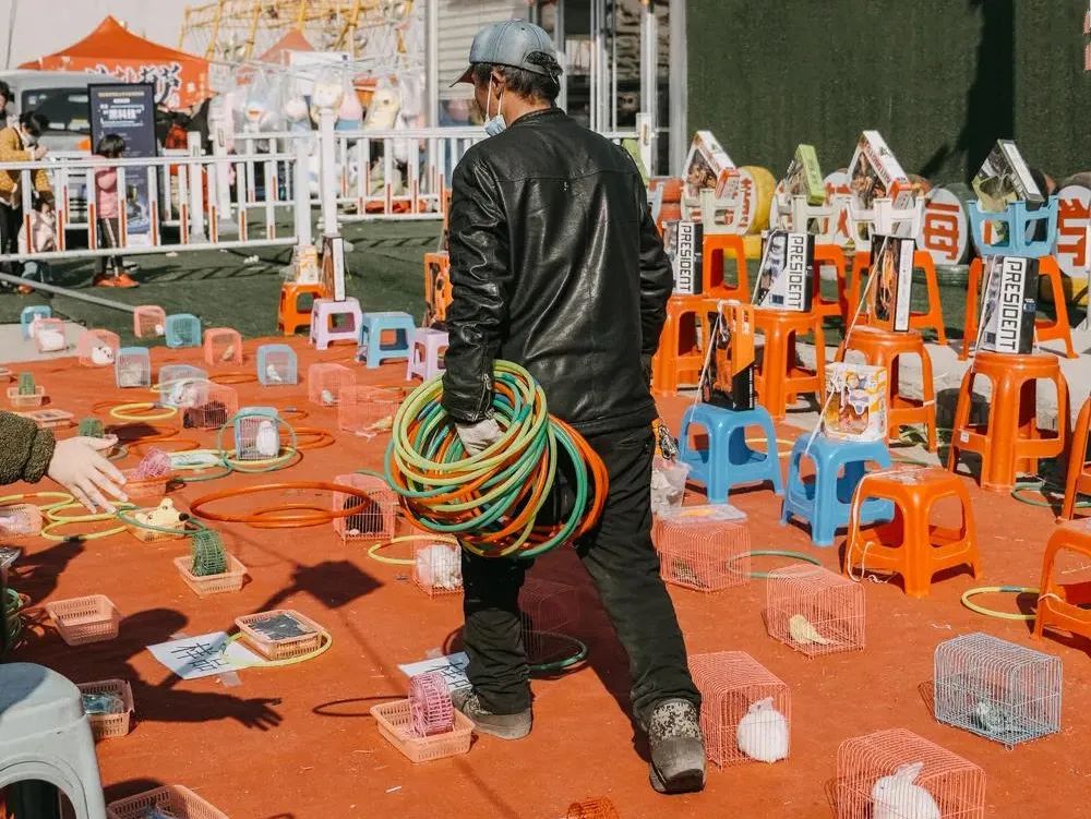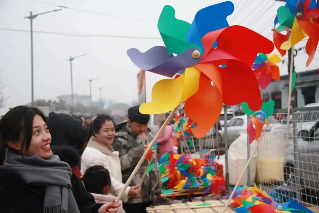 套圈,是纸坊庙会的顶流玩乐项,大人小孩都愿意一试身手。庙会之上,百货云集,除了看看看、吃吃吃还可以买买买。假面、小车、泥塑、刀茅、风车……让大家在这里自由“淘宝”。
