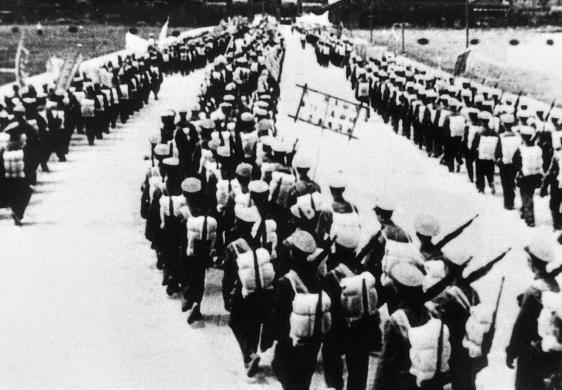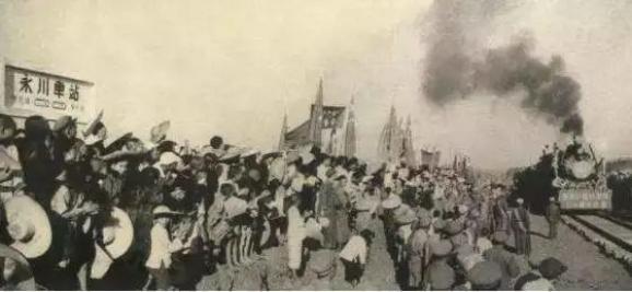 (贺龙元帅在成都站为成渝铁路首发列车剪彩)