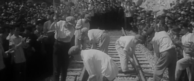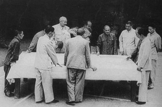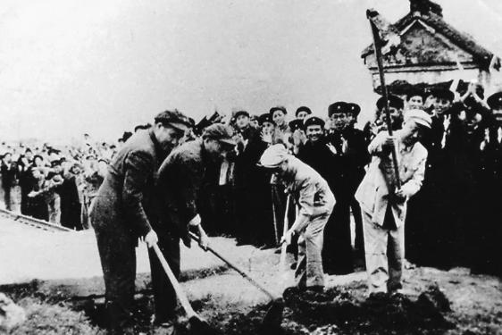 (铁道部部长滕代远、西南军区副司令员李达、川西行政公署主任李井泉等为宝成铁路开工奠基)