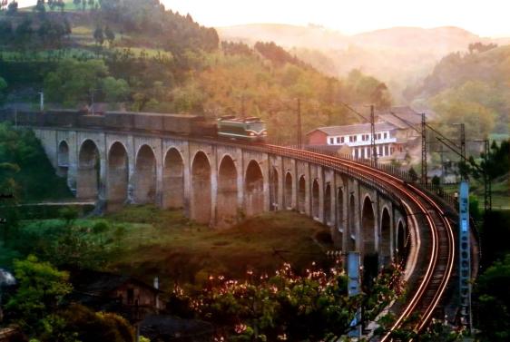 (火车通过成渝铁路王二溪大桥,下图@成都工务段)