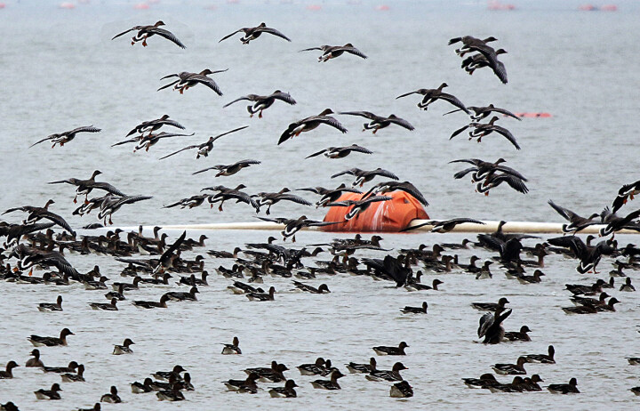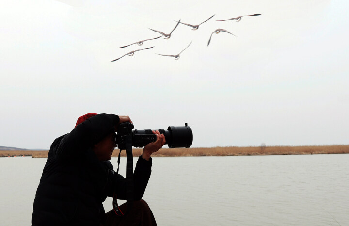 他们趁着难得的好天气,架起长枪短炮来到这里‘’打鸟‘’。