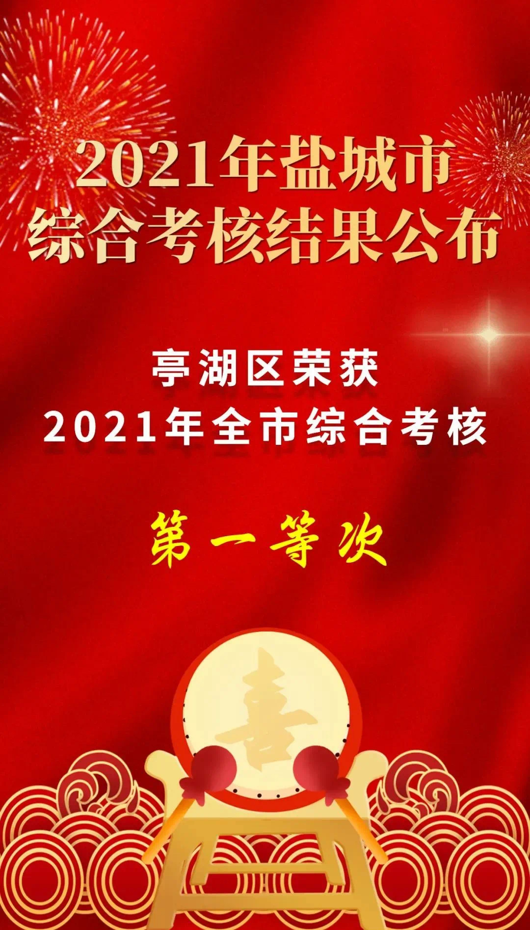 亭湖区荣获盐城市综合考核第一等次!