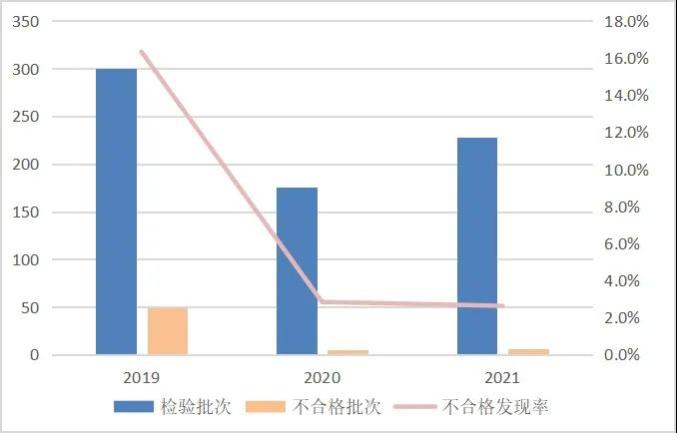 ▲该产品近3年国家监督抽查不合格发现率分别为16.3%、2.8%、2.6%。