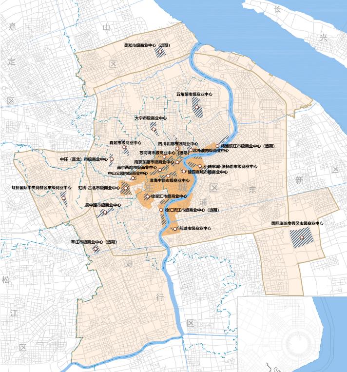 市级商业中心主要面向全市、长三角地区乃至全国的广域性消费人群,匹配大都市圈核心城市的功能定位,提供综合消费服务,集聚高端购物、餐饮美食、商务休闲、文化娱乐等功能,与社会主义现代化国际大都市相适应、体现城市活力、配套服务齐全的综合性商业功能区。