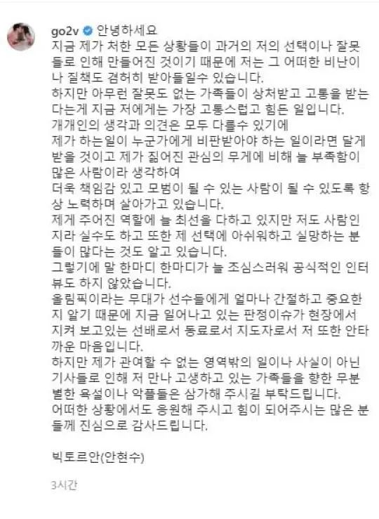 安贤洙在社交媒体发布的长文截图(图源:韩媒)