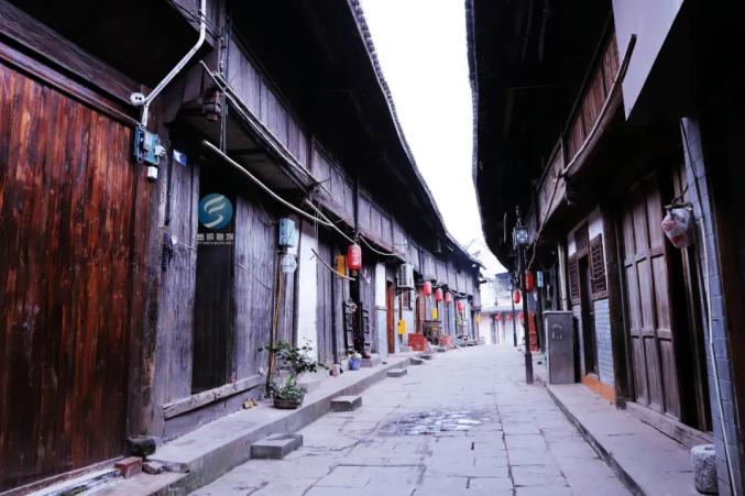 古镇有米市巷、肖家巷、文昌巷、丝绸巷四条古老干净的小巷,街巷总长达5248米,全铺以当地石板或石条,石板历经千年的磨砺,让游客窥探到古镇的昨日辉煌。