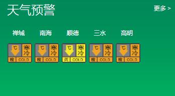 顺德区寒冷黄色预警信号生效中