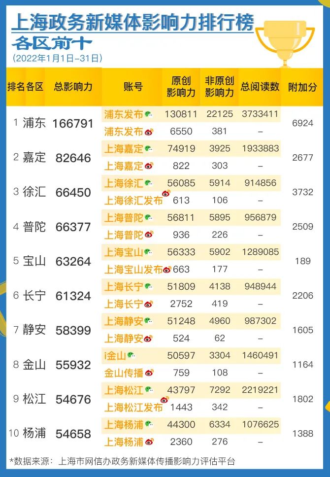附加分:主要体现各政务新媒体参与正能量网上宣传的情况,本月主要是参与疫情防控、上海两会、春节等主题宣传情况。