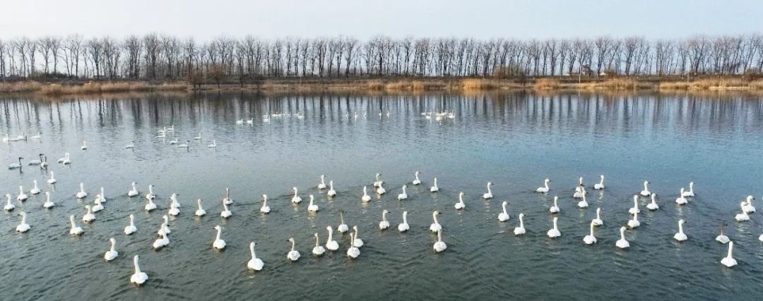 ▲金湖县高邮湖▲清澈的湖水和丰富的鱼虾资源,吸引了大批迁徙的天鹅在此驻足,呈现出一片和谐的生态景象。(赵启瑞)