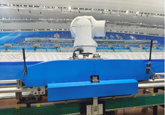 △“猎豹”和它的高速轨道伴侣据介绍,高速轨道系统对场地有一定要求,需要在赛场外侧运动员的海绵缓冲垫后安装轨道系统,还要安装隔离板以确保周围人员安全。但此次的短道速滑场地和“猎豹”的部署要求并不相符,出于适配能力和安全的考虑,短道速滑比赛并未安装“猎豹”系统。