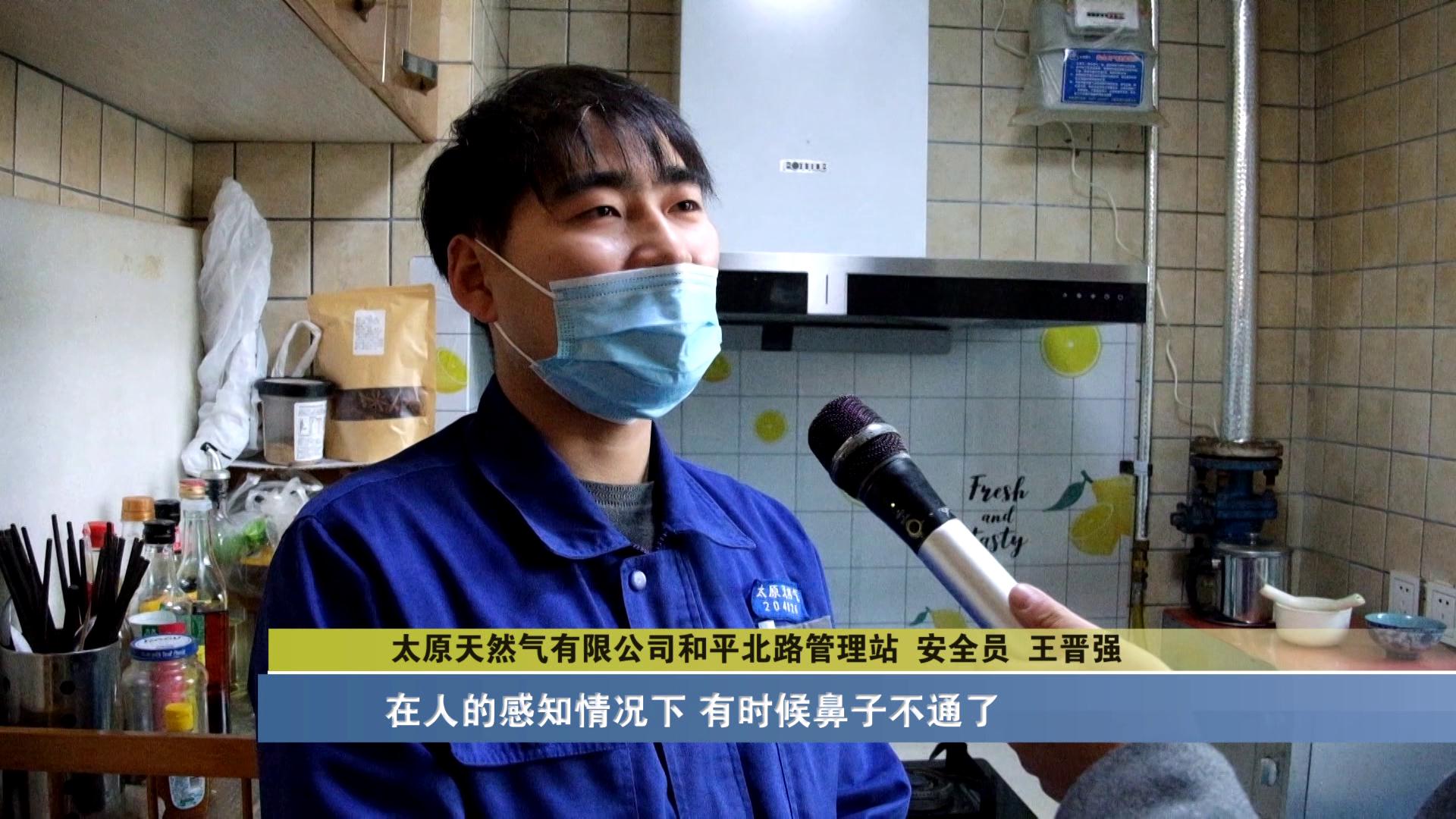 太原天然气有限公司和平北路管理站安全员 王晋强:轻微的燃气泄露他不易发觉,等燃气泄露大的容易造成安全事故,建议广大燃气用户,不要用塑料袋包蔽一些燃气接口、阀门之类的。