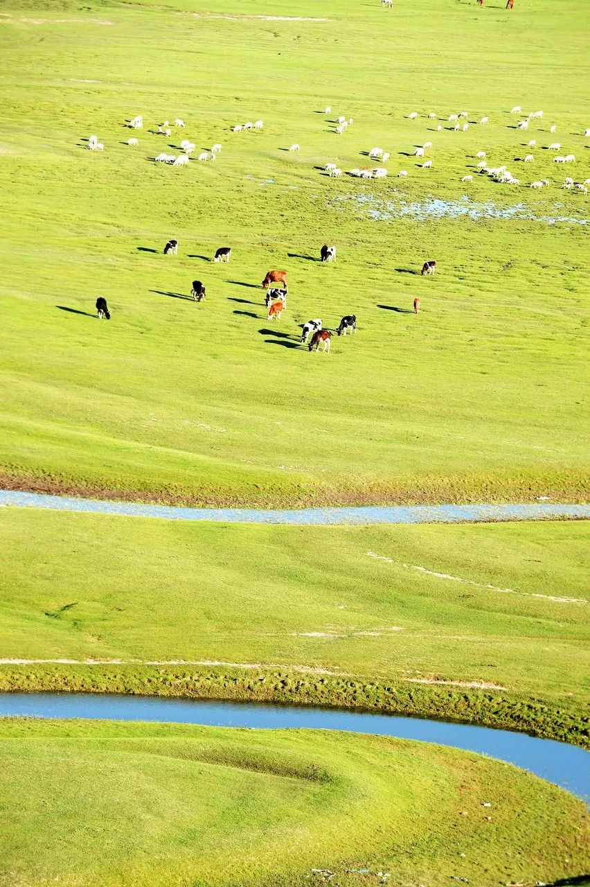 满地叫不出名字的鲜花将草原点缀的五彩斑斓与那牛羊、骏马、牧人构成了一幅极美的图画