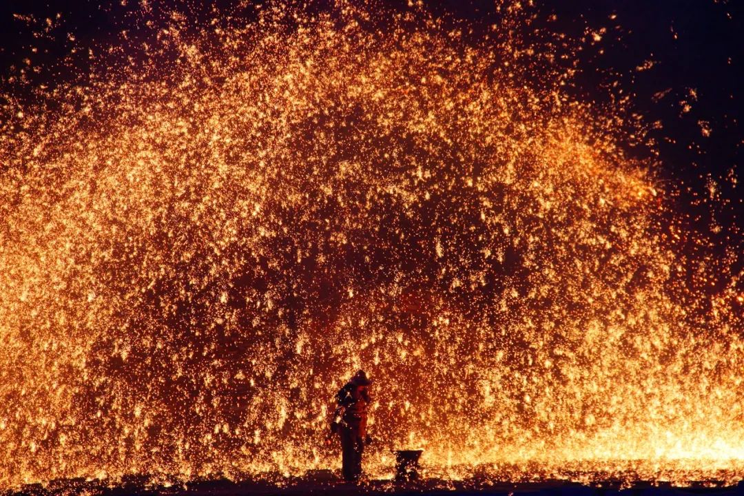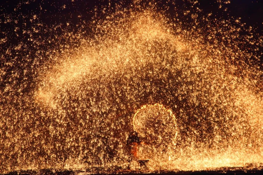 是用熔化的铁水泼洒到古城墙上迸溅形成万朵火花犹如枝繁叶茂的树冠火树银花说的就是如此吧