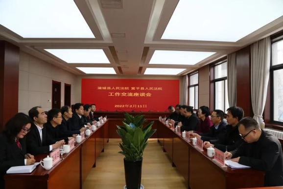2月11日上午,蒲城县人民法院党组书记、代院长杨晓东带领班子成员及法庭庭长一行,莅临富平县人民法院开展工作经验交流活动。富平法院党组书记、代院长李向红及全体班子成员陪同调研。