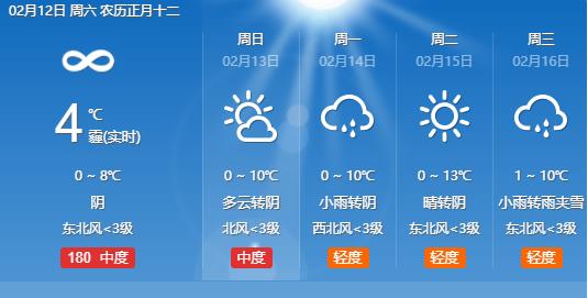 2月11日19时,市重污染天气应急指挥部办公室发布重污染天气橙色预警信息,从2月12日0时起,启动重污染天气Ⅱ级应急响应。据市“一市一策”驻点跟踪研究工作组预测,12日,受弱气压场控制,扩散条件较差,预计空气质量中到重度污染为主;13—14日,受不利气象条件影响,预计我市空气质量为中度污染;15日,受静稳天气持续影响,预计我市空气质量为轻到中度污染。(记者 高乐)