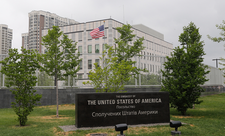 乌克兰基辅,美国驻乌克兰大使馆。 澎湃影像 资料图
