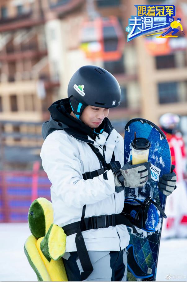 何冲在节目中由跳水“难度王”变成了单板滑雪“摔跤王”