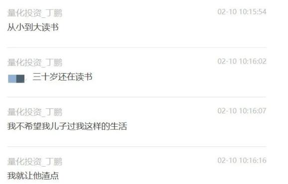 这份奇葩教育观,来自一份聊天记录,丁鹏在群聊中称(自己)“不培养儿子,让他去渣,多生几个娃”。