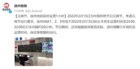 元宵节当天,徐州地铁延时运营→