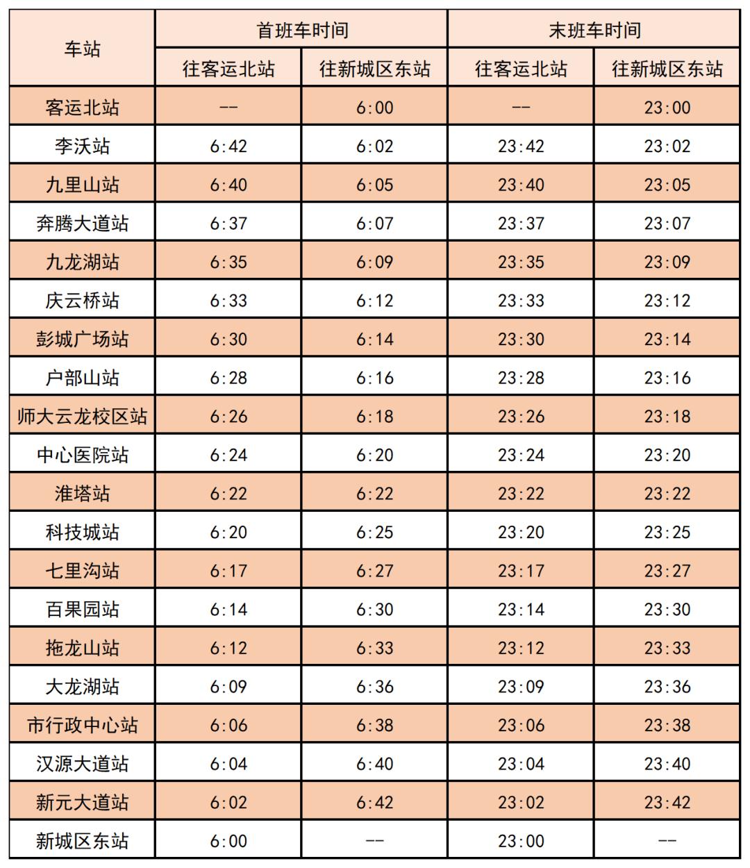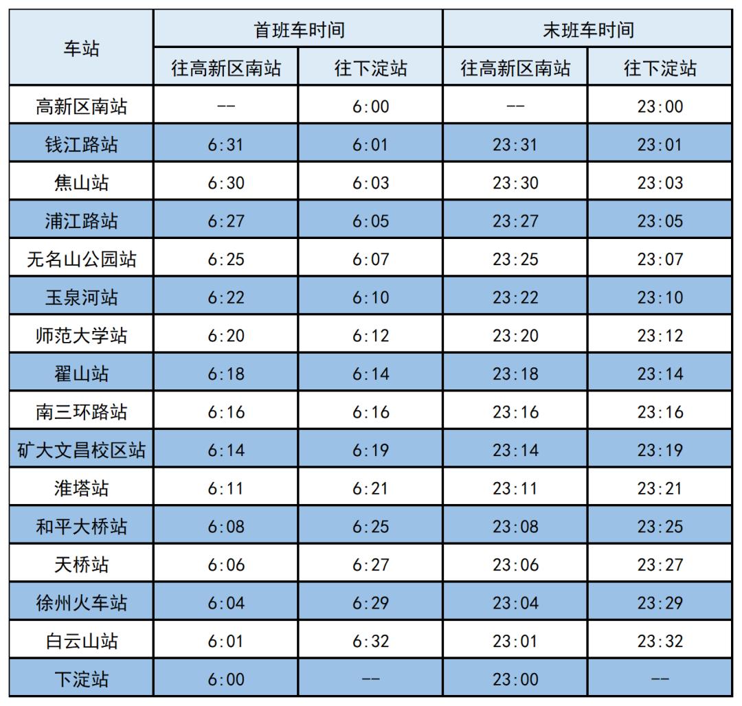 3号线首末班车时刻表
