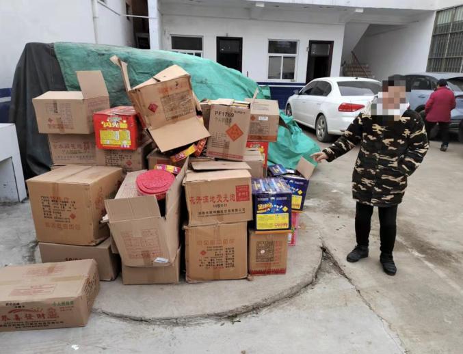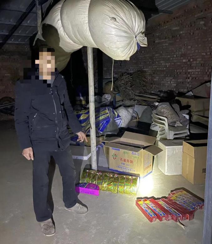 2月2日,宜阳县局民警在工作中发现,莲庄镇涧河村袁某俊经营的百货商店内非法储存烟花爆竹,现场查获12挂鞭炮,七匹狼擦炮16盒,满地珍珠33包,4个王者陀螺,11个孔雀开屏,64包足球炮。宜阳县局根据《中华人民共和国治安管理处罚法》第三十条规定,对袁某俊行政拘留5日。
