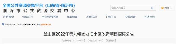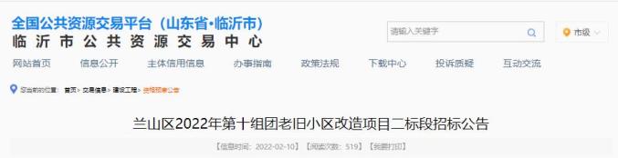 兰山区2022年第二组团老旧小区改造项目招标公告