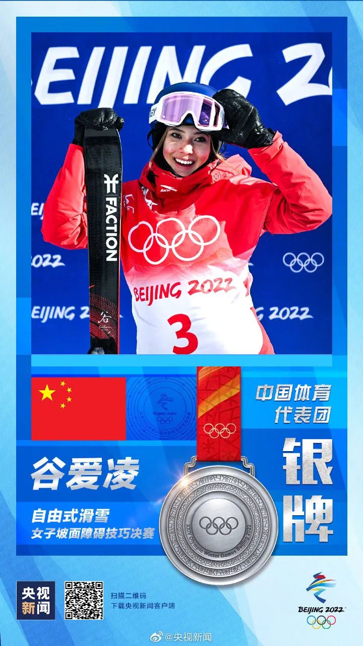 今天,在北京冬奥会自由式滑雪女子坡面障碍技巧决赛上,谷爱凌在第二跳失误摔倒的情况下,顶住压力,以86.23分夺得银牌。这是谷爱凌在北京冬奥会上参加的第二个项目,在此前的自由式滑雪女子大跳台比赛中,她已夺得一枚金牌。