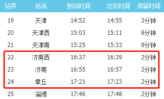 途经济南西、济南、章丘站