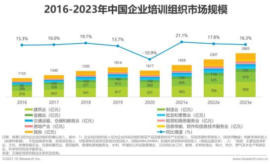 培训组织-市场规模近1617亿,建筑、制造和金融行业企业培训市场占比超60%