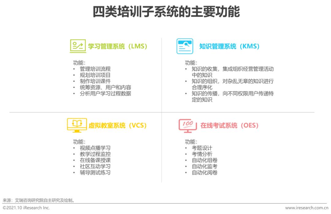 从产品定位的角度,培训系统可分为两种:一种是通用型系统,主要面向绝大多数企业在培训管理及实施过程中的通用需求;另一种是垂直型系统,多针对某些特定行业,在通用需求之上,能够基于自身深刻的行业与业务理解能力来充分覆盖企业的特殊需求。从使用者的视角来看,培训系统旨在为企业管理者评估培训效果提供数据量表,为企业培训人员组织培训活动提供管理工具,为企业职工参与培训提供学习平台,因此,系统设计的科学性、功能模块的易用性和学习资源的丰富性是培训系统的合格线。在此基础之上,头部厂商还会通过技术及服务来提升用户体验,增强用户对平台的粘性,推动人力资源开发的进程。