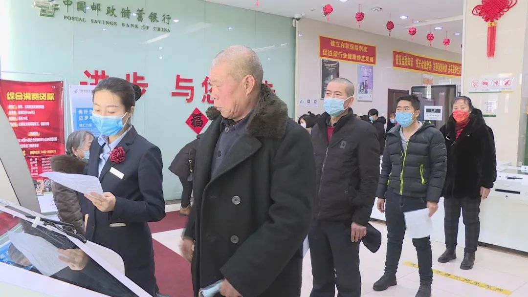 在通江路西段的邮储银行所属营业点,来办理社保卡和存取款业务的市民络绎不绝,大家有序排队,经过测量体温、查看健康码并消毒后办理申领和补换业务。