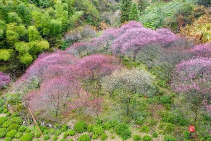推荐赏花地:齐云山镇南坑村、板桥乡呈村、溪口镇祖源村、白际乡严池等