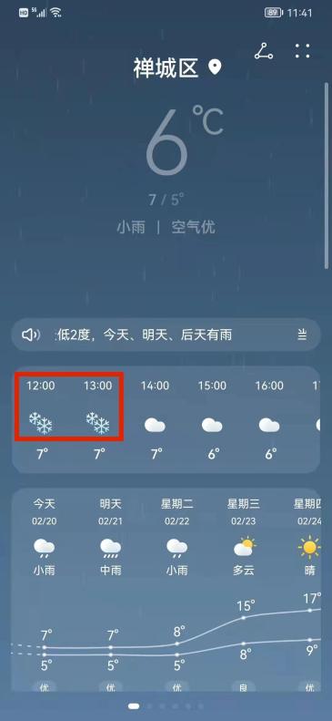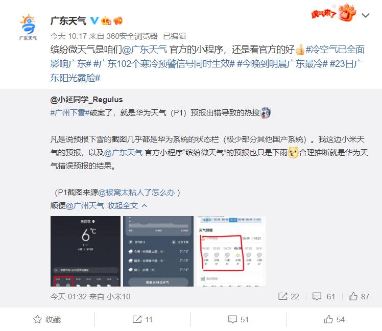 针对不少网友提出的手机上的天气预报显示下雪的情况