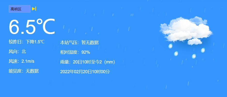 今天10时,高明区气温6.5℃,为五区中最低温。市气象台预计,今天佛山仍有持续性降雨,累积雨量可达大雨、局部暴雨,气温5到7℃。各区寒冷橙色预警信号已生效,市民需继续做好防寒保暖和防风防雨工作,同时注意水陆交通安全。