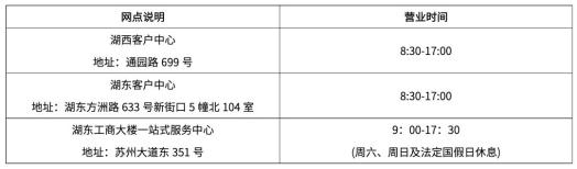 4.2022年2月16日起暂停跨塘服务网点、唯亭服务网点、胜浦服务网点、斜塘服务网点、车坊服务网点、星海客户中心对外服务,具体恢复时间根据疫情情况另行通知,在暂停期间如您确需前往网点办理业务,可至以下网点办理: