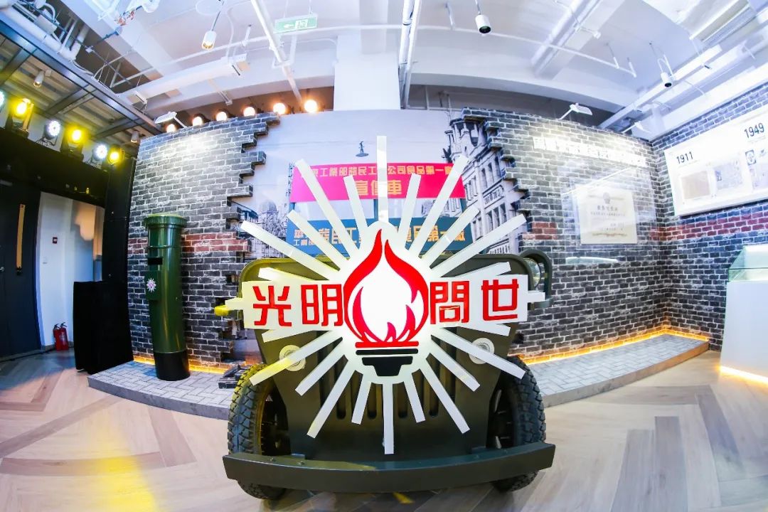打破时空界限的宣传车从墙上“破门而出”,代表了“光明”品牌就此诞生;而周恩来总理签发的国务院奖状证书,代表了光明乳业的荣誉象征;怀旧的邮政信筒,迎面而来的复古气息,令人流连忘返。