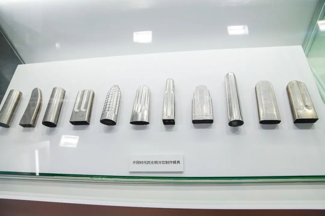 不同时代的冷饮制作模具和包装,多维度展现着光明冷饮的历史,挂着光明冷饮棒冰雪糕箱的老式自行车散发复古气息,怀旧老照片更是带我们重返老上海的深邃。