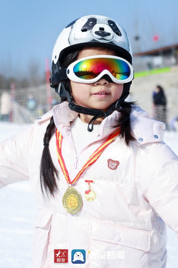 2020年1月,申安娜迎来了她的第一场比赛——日照市第二届冬季全民健身运动会,“她是全场年纪最小的,其他和她角逐的都是8岁到12岁的小朋友,也有20多岁的成年人。”申安娜的妈妈告诉记者,在谁也没有想到的情况下,4岁的申安娜以绝佳的状态捧回了双板滑雪项目的第一名。