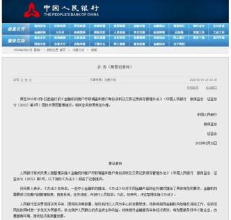 ▲央行2月21日(昨日)晚间发布公告称,原定2022年3月1日起施行的《金融机构客户尽职调查和客户身份资料及交易记录保存管理办法》(中国人民银行银保监会证监会令〔2022〕第1号)因技术原因暂缓施行。相关业务按原规定办理。