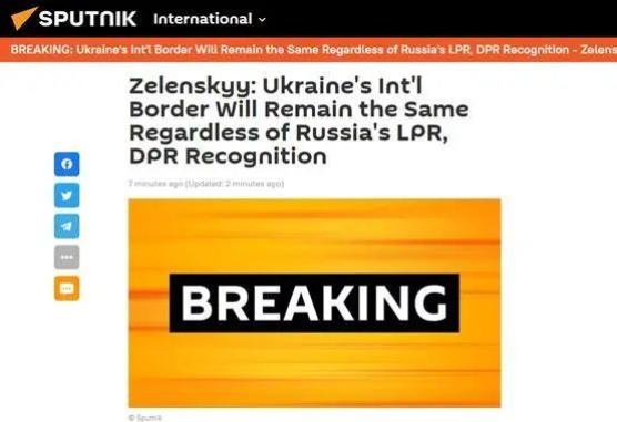 乌克兰总统泽连斯基表示,乌克兰能够保护自己的边界,国土防卫已经组织起来。俄罗斯对自行成立的“顿涅茨克人民共和国”与“卢甘斯克人民共和国”的承认是对乌克兰领土和主权完整的侵犯。