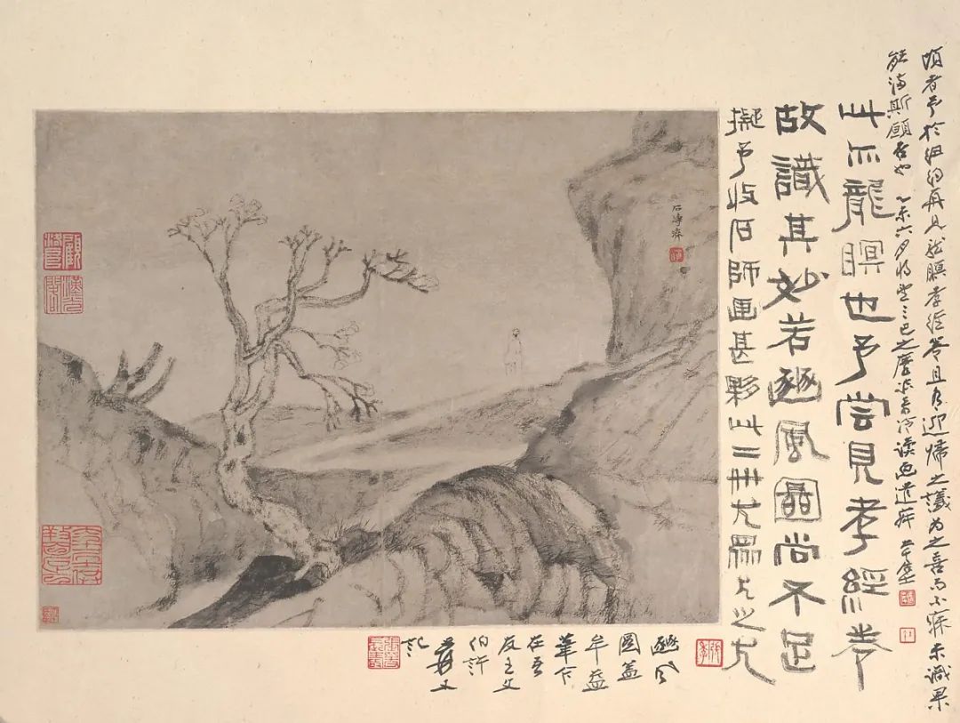 石涛笔下的人物很多都是他自己,这一刻的驻足是画家对于自然的观察和沉思。