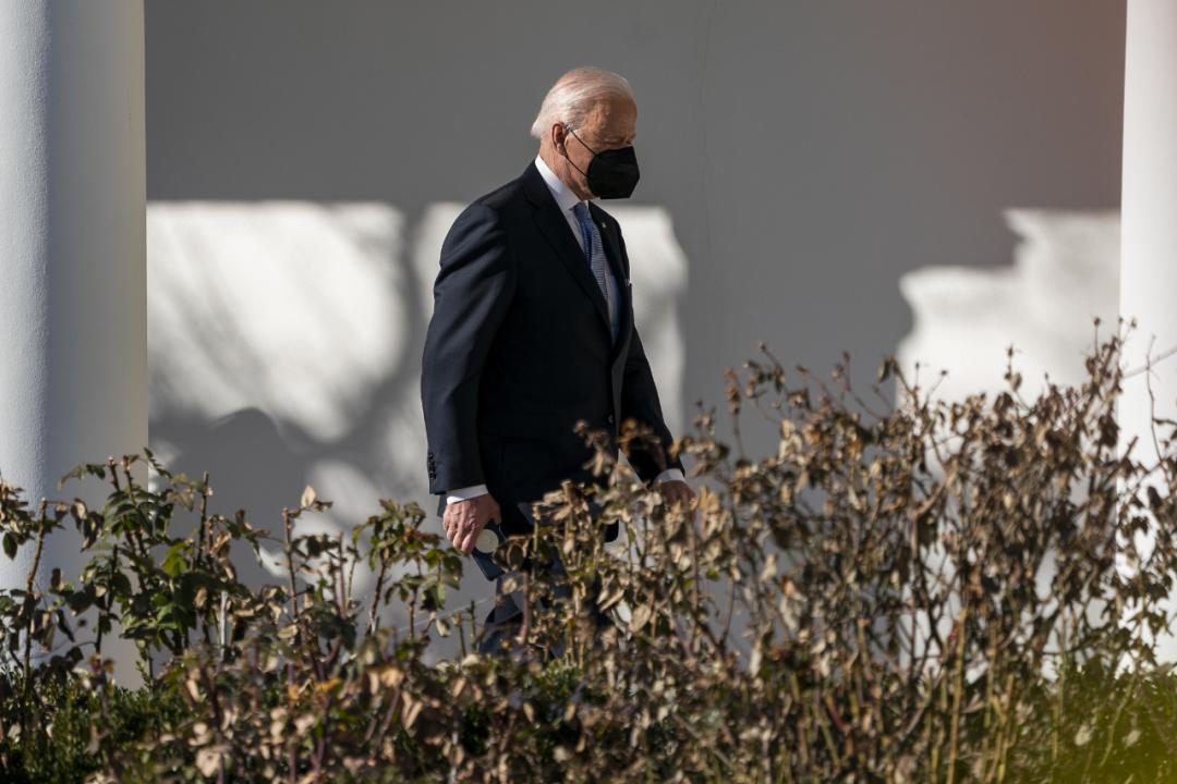 2022年2月11日,美国华盛顿特区,美国总统拜登在白宫南草坪准备登上海军陆战队一号。图|人民视觉2021年8月中旬,塔利班上台后,拜登政府随即宣布冻结阿富汗央行存储在海外的95亿美元(约合601.8亿元人民币)资产,其中约70亿美元存储在美国。