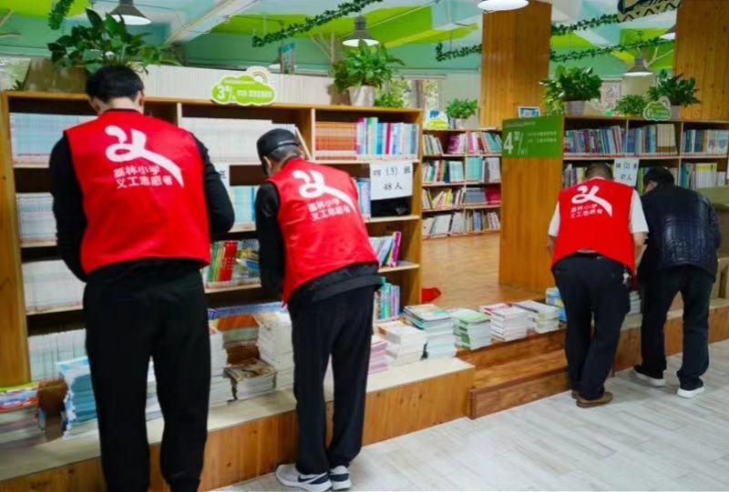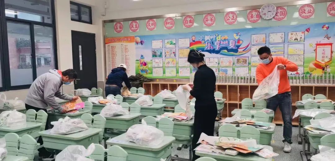 “一天分了一千三百多份,每一份15至17本书,一本一本分拣入袋。”“中午短暂休息了一会,不到2点又开始忙碌起来,直到下午5点半才结束,部分家长没顾上吃饭就前来支援。”